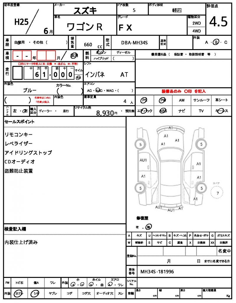 | Manufacturer | SUZUKI | Model | WAGON R |