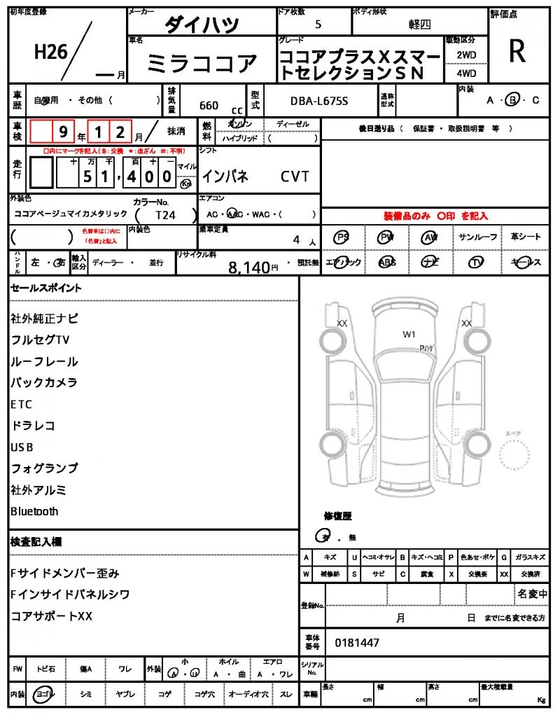 | Grade | ココアプラスXスマートセレクションSN | Model Code | DBA-L675S |