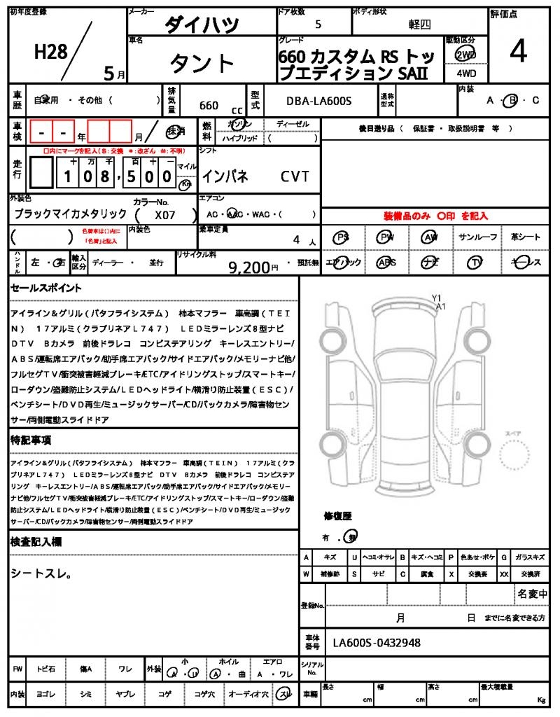 | Grade | 660 カスタム RS トップエディション SAII | Model Code | DBA-LA600S |