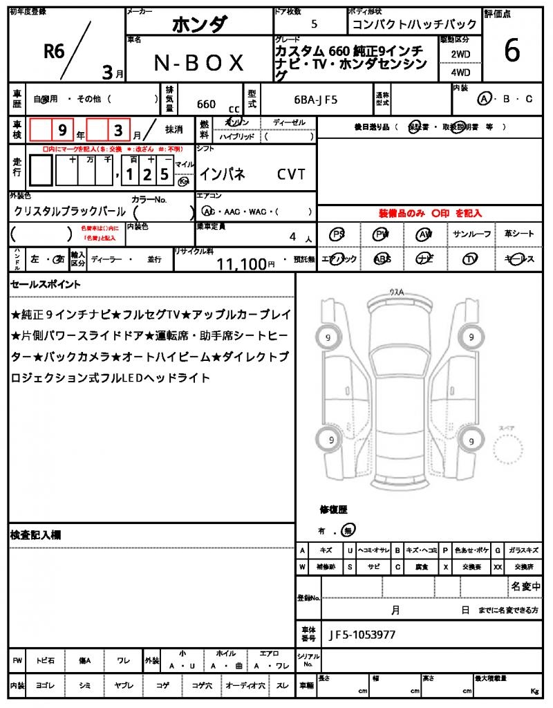 | Grade | カスタム 660 | Model Code | 6BA-JF5 |