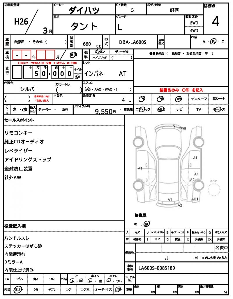 | Grade | L | Model Code | DBA-LA600S |