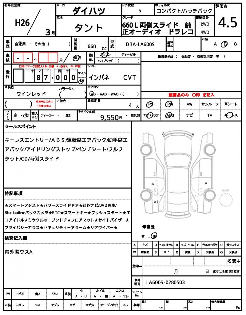 | Manufacturer | DAIHATSU | Model | TANTO |