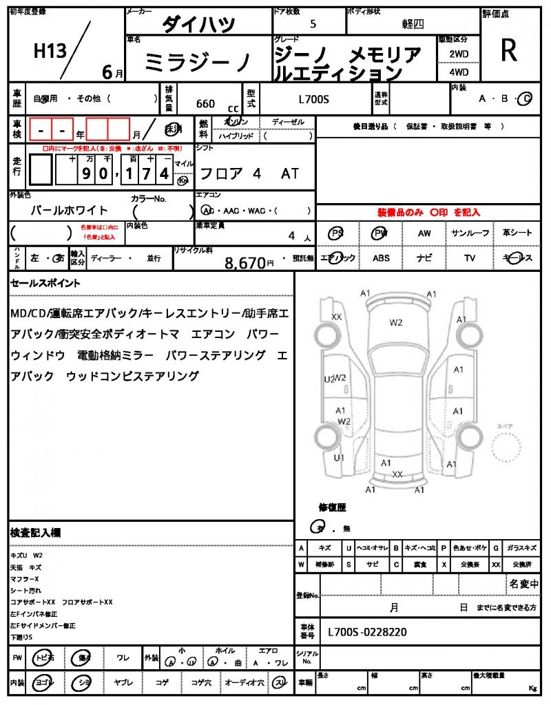 | Registration Date | 2001/06 | Chassis Number | L700S-0228220 |