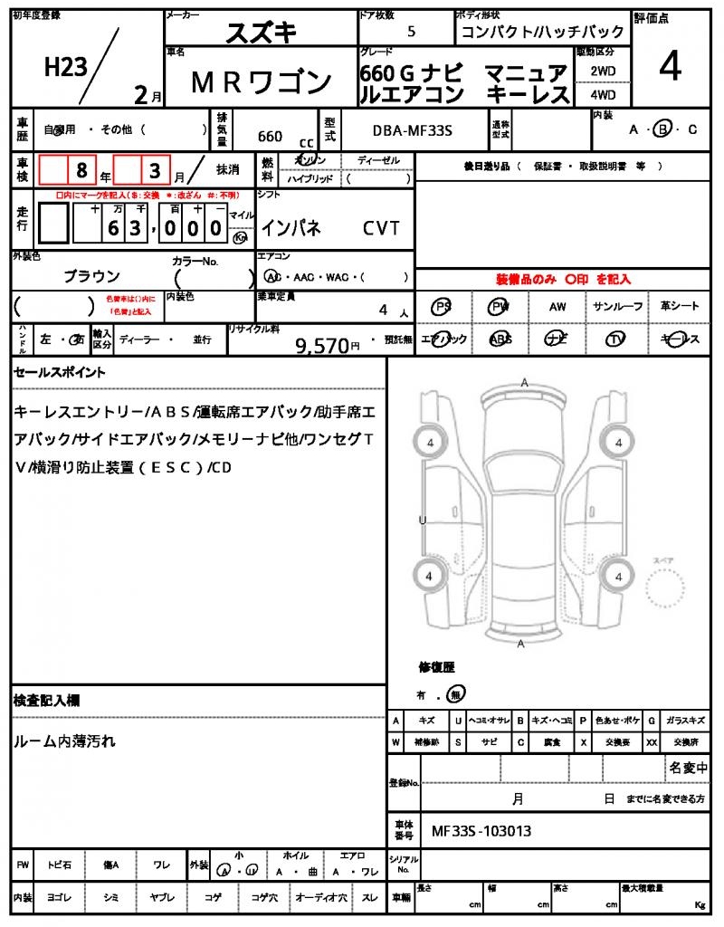 | Registration Date | 2011/02 | Chassis Number | MF33S-103013 |