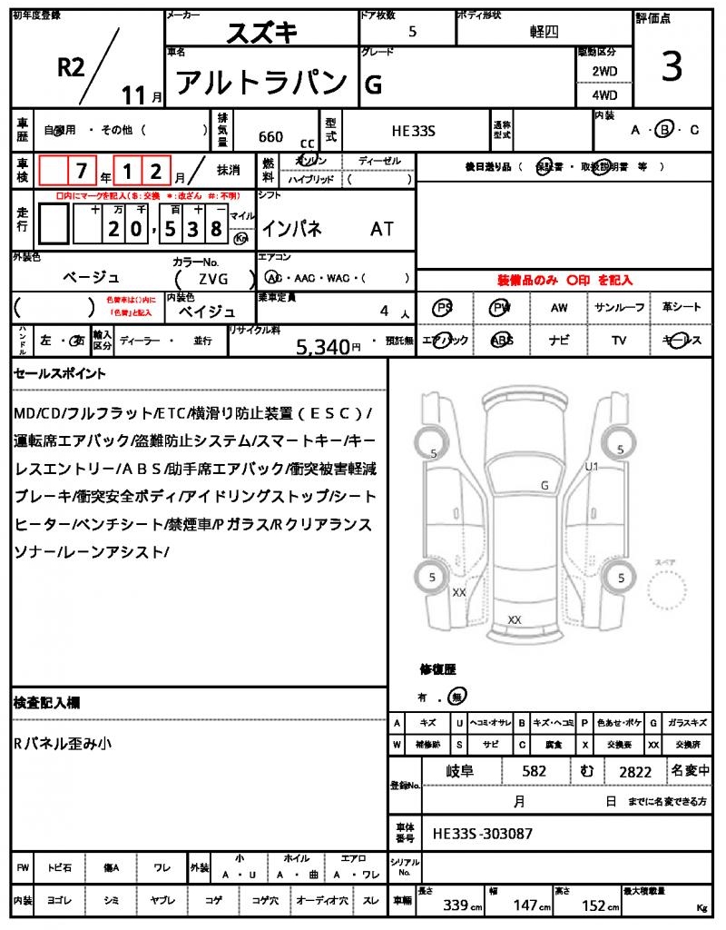 | Registration Date | 2020/11 | Chassis Number | HE33S-303087 |
