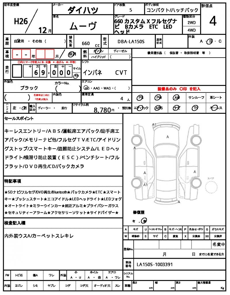 | Grade | 660 カスタム X | Model Code | DBA-LA150S |