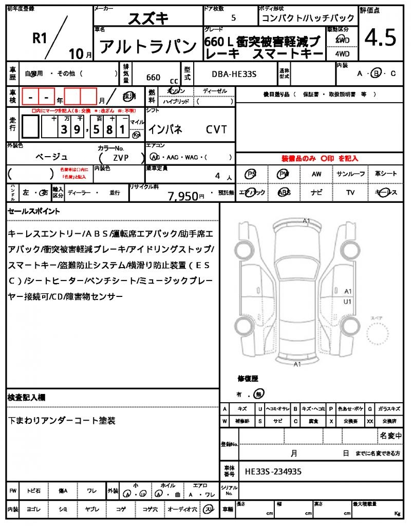 | Manufacturer | SUZUKI | Model | ALTO LAPIN |