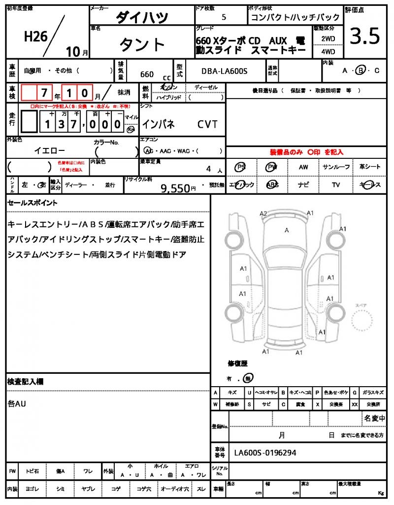 | Grade | 660 Xターボ | Model Code | DBA-LA600S |