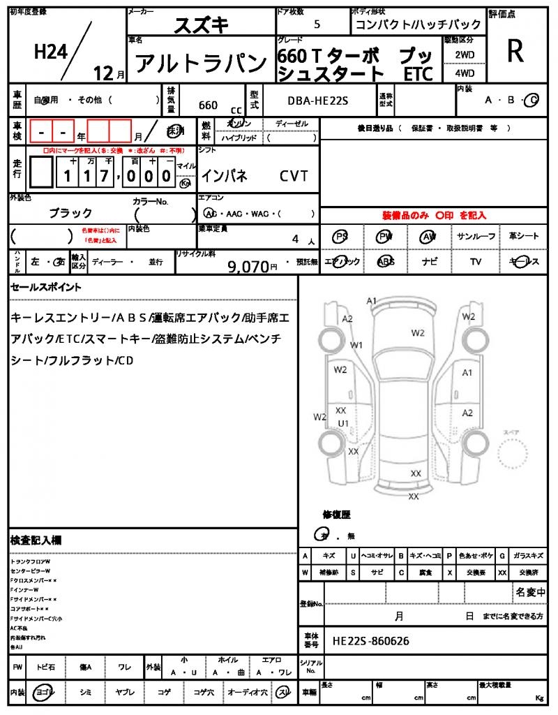 | Registration Date | 2012/12 | Chassis Number | HE22S-860626 |