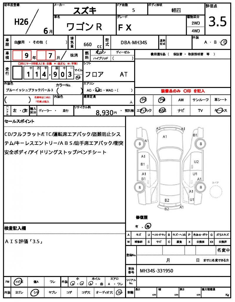 | Registration Date | 2014/06 | Chassis Number | MH34S-331950 |