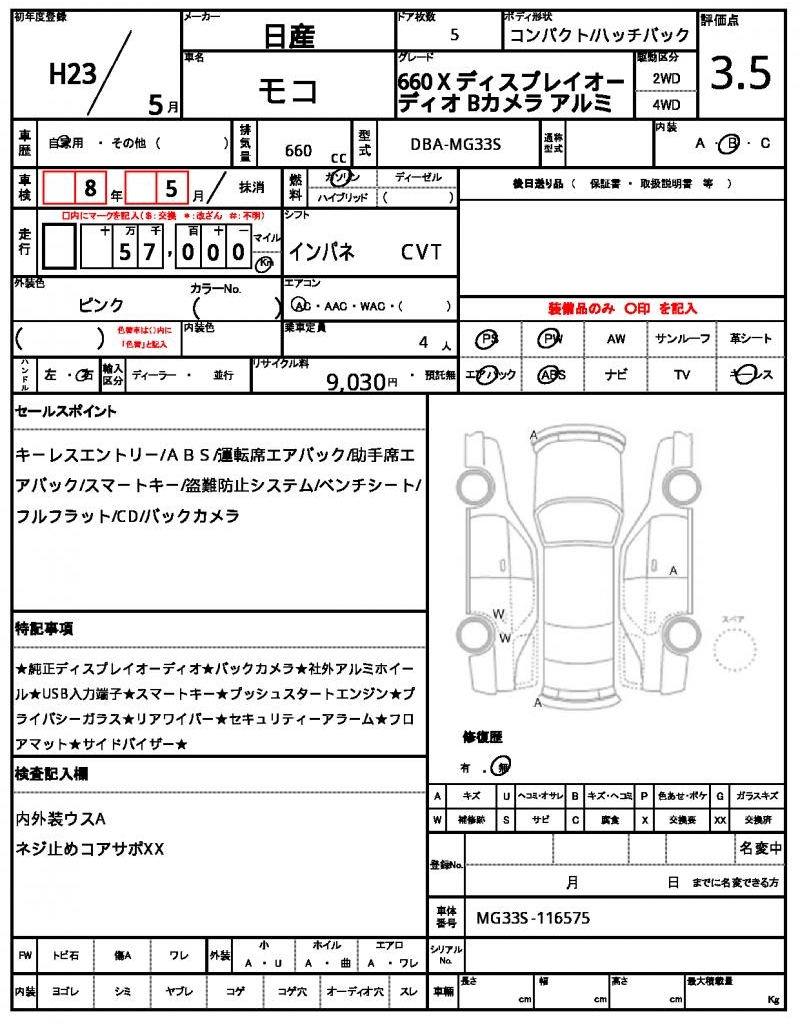 | Registration Date | 2011/05 | Chassis Number | MG33S-116575 |