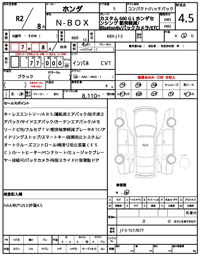 | Registration Date | 2020/08 | Chassis Number | JF3-1517077 |
