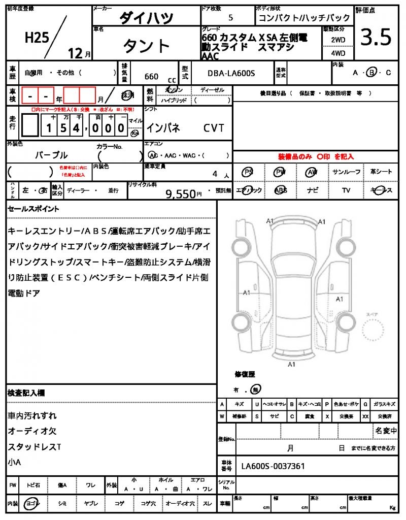 | Grade | 660 カスタム X SA | Model Code | DBA-LA600S |