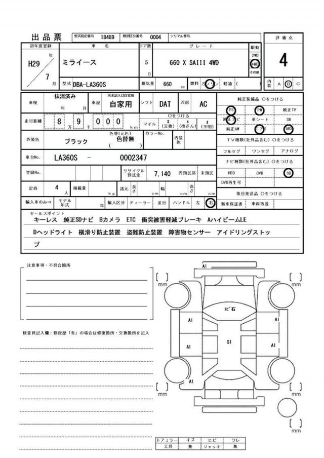 | Grade | 660 X SAIII 4WD | Model Code | DBA-LA360S |