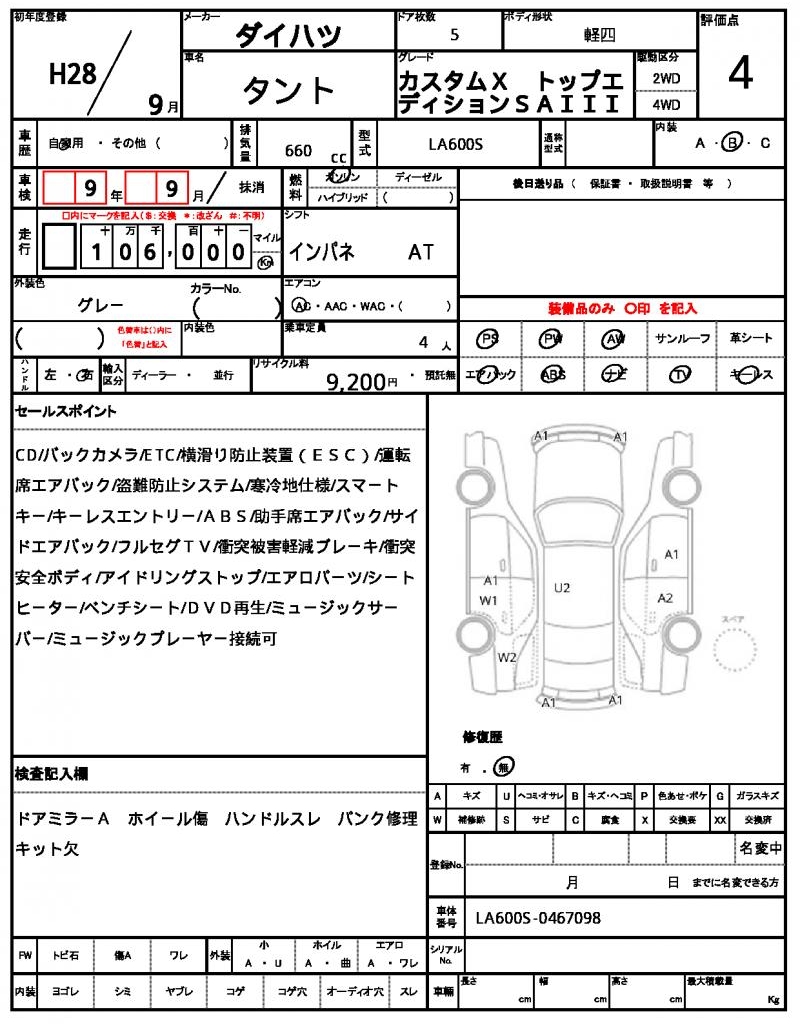 | Grade | カスタムX トップエディションSAIII | Model Code | LA600S |