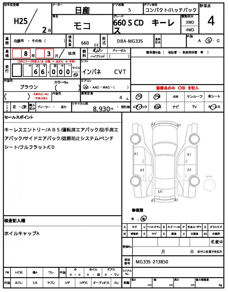 | Registration Date | 2013/02 | Chassis Number | MG33S-213850 |