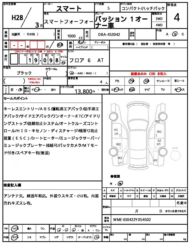 | Grade | パッション 1オーナー車 | Model Code | DBA-453042 |