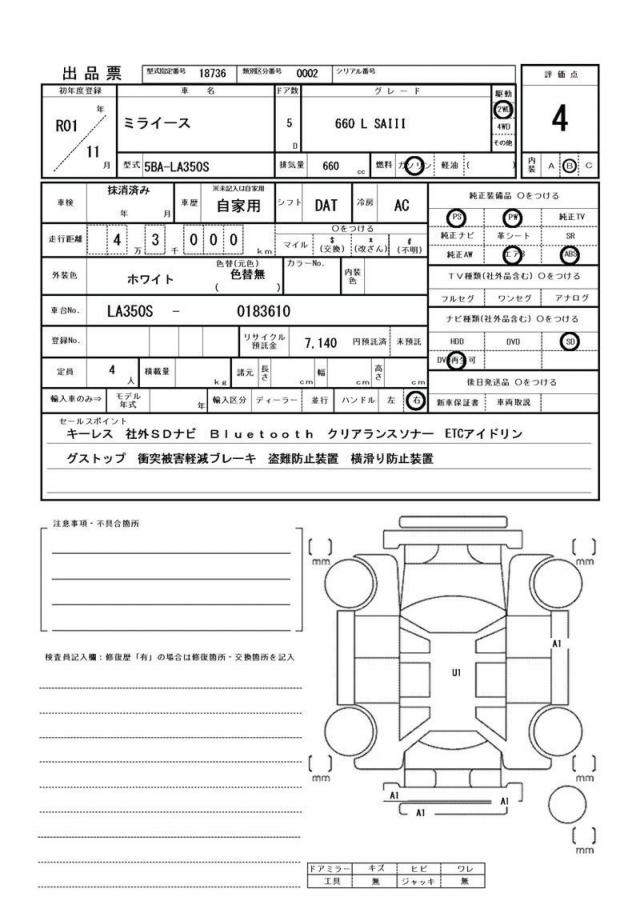 | Body Type | Kei Car (Mini Vehicle) | Color | White |