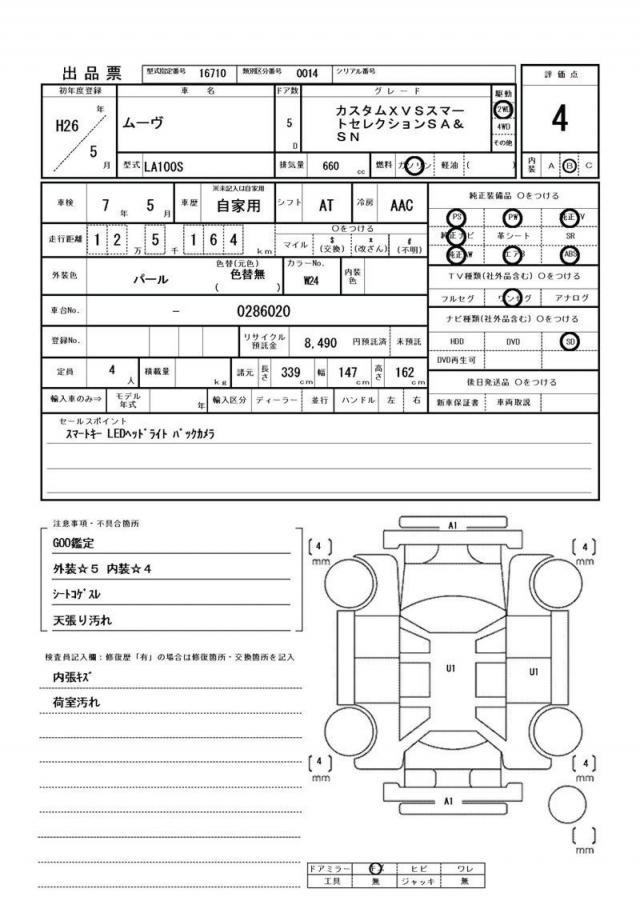 | Grade | カスタム X VSスマートセレクションSA&SN | Model Code | LA100S |