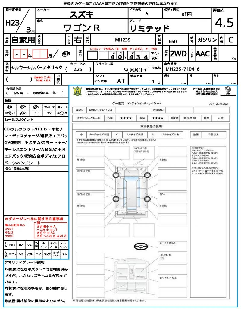| Grade | リミテッド | Model Code | MH23S |