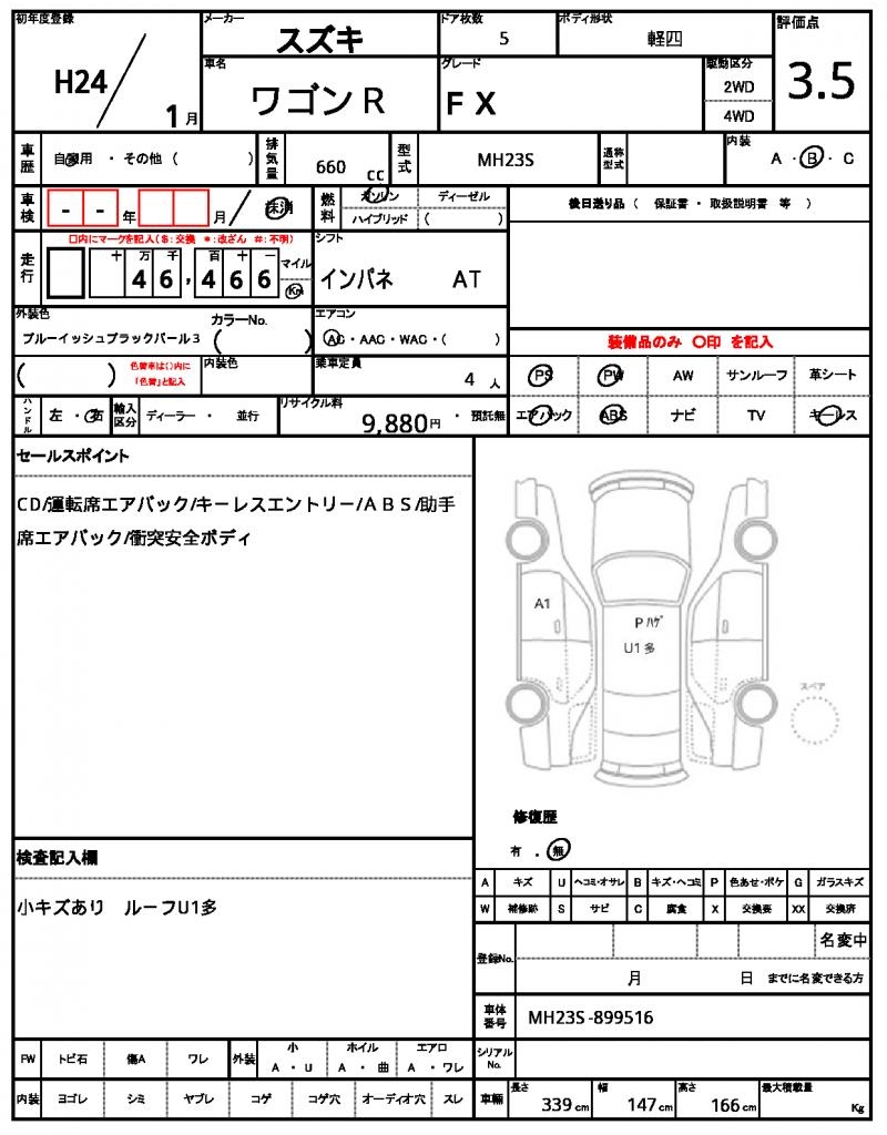 | Registration Date | 2012/01 | Chassis Number | MH23S-899516 |
