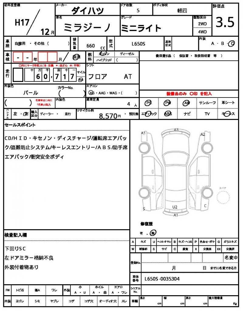 | Registration Date | 2005/12 | Chassis Number | L650S-0035304 |