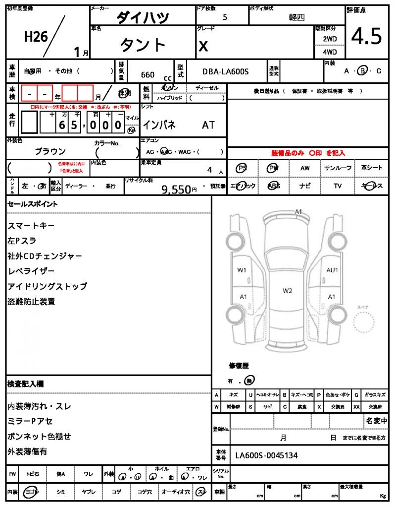 | Registration Date | 2014/01 | Chassis Number | LA600S-0045134 |