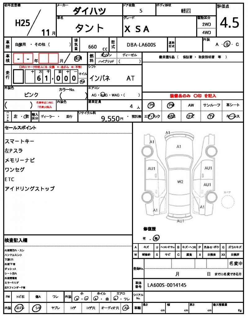 | Grade | X SA | Model Code | DBA-LA600S |