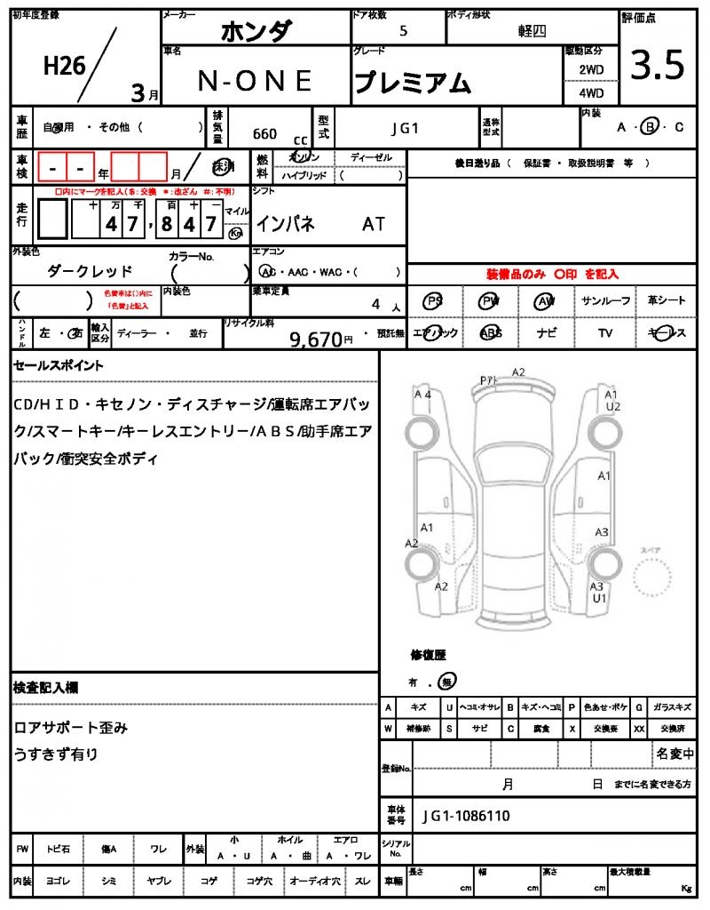 | Manufacturer | HONDA | Model | N-ONE |
