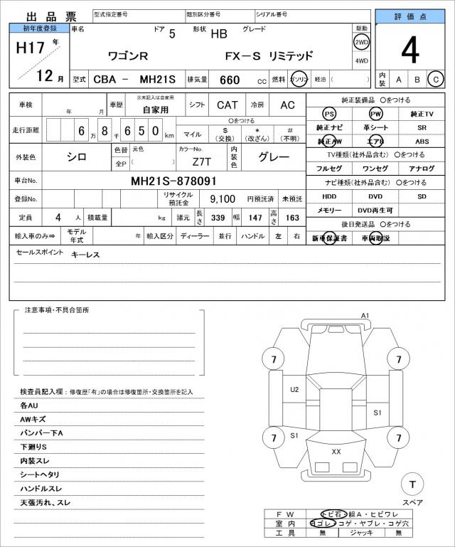 | Grade | FX−Sリミテッド | Model Code | CBA-MH21S |