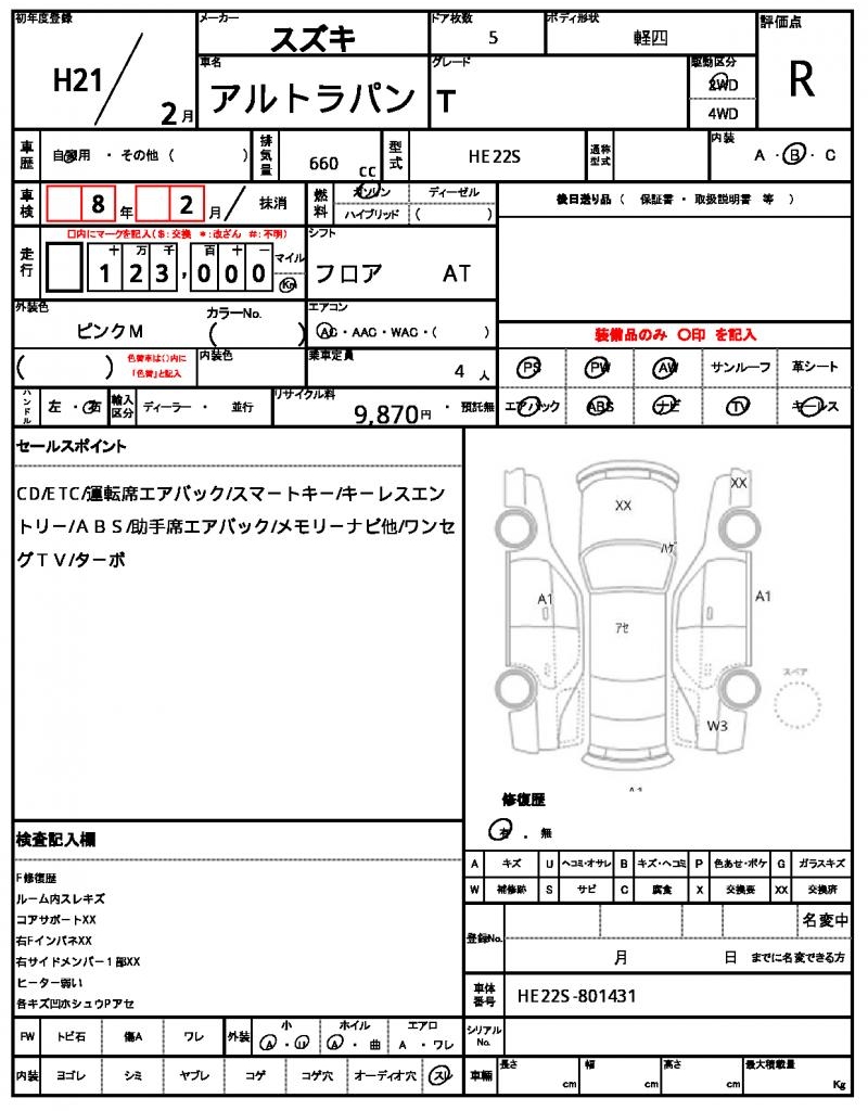 | Registration Date | 2009/02 | Chassis Number | HE22S-801431 |