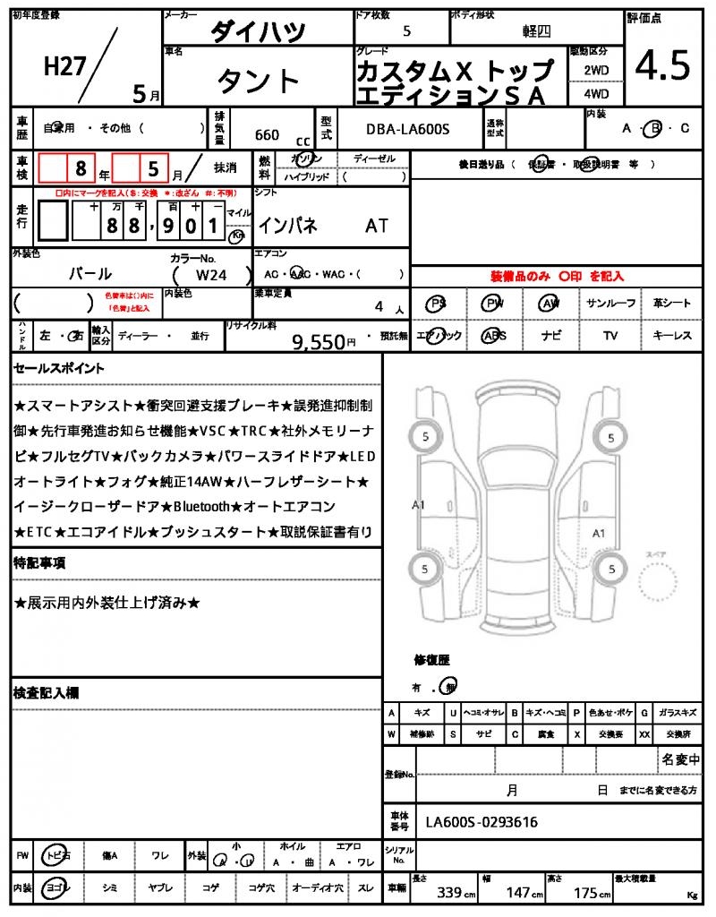 | Grade | カスタムX トップエディションSA | Model Code | DBA-LA600S |