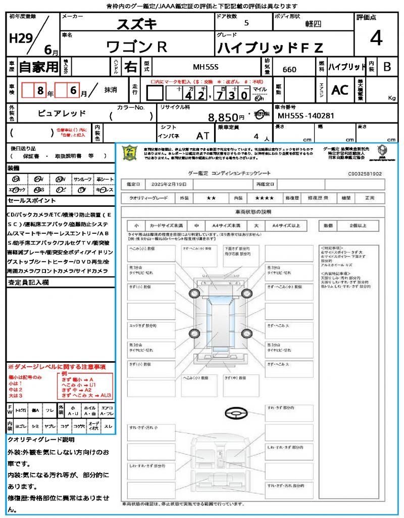 | Grade | ハイブリッドFZ | Model Code | MH55S |