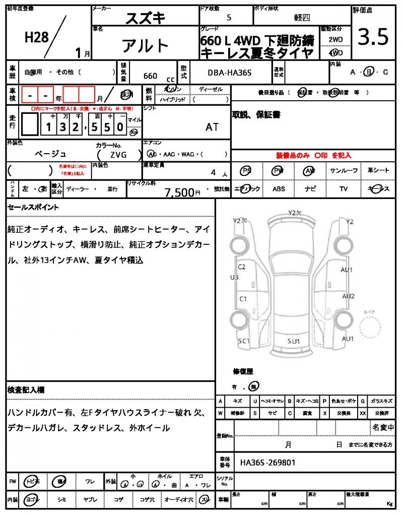 | Grade | 660 L 4WD | Model Code | DBA-HA36S |
