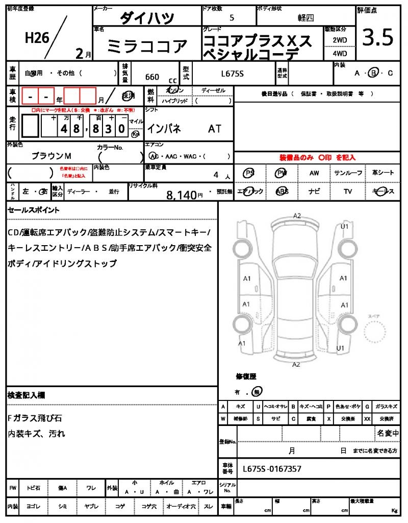 | Registration Date | 2014/02 | Chassis Number | L675S-0167357 |