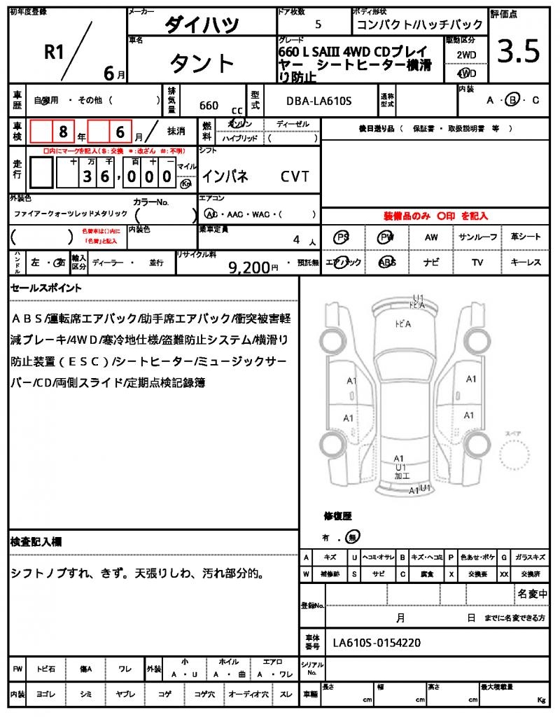 | Grade | 660 L SAIII 4WD | Model Code | DBA-LA610S |