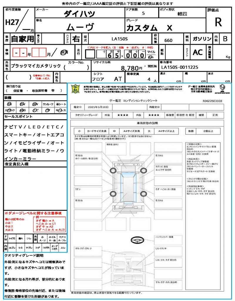 | Grade | カスタム X | Model Code | LA150S |