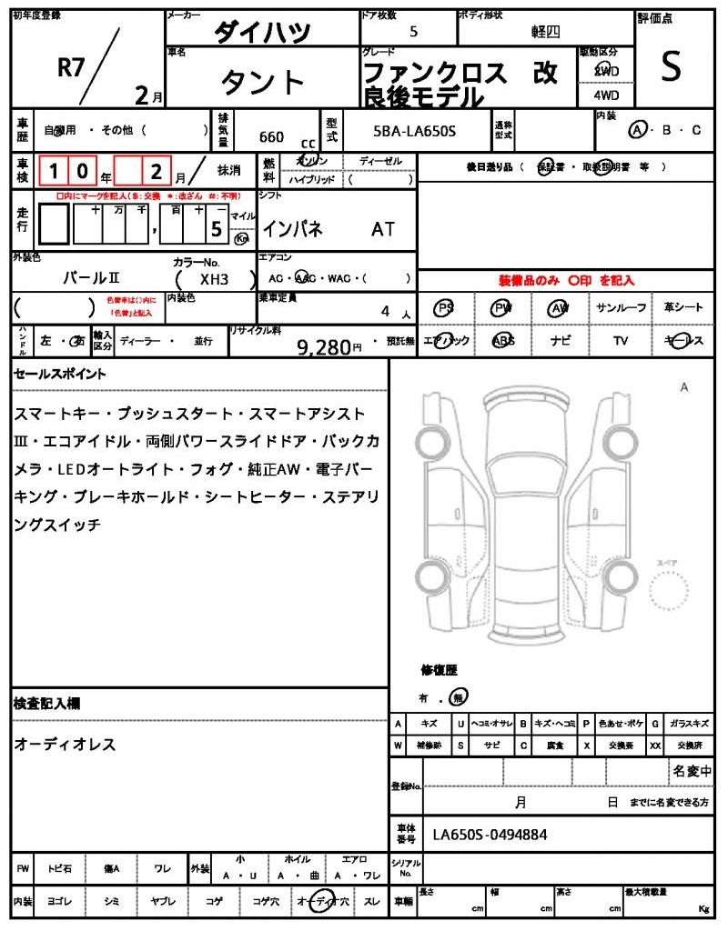 | Grade | ファンクロス 改良後モデル | Model Code | 5BA-LA650S |
