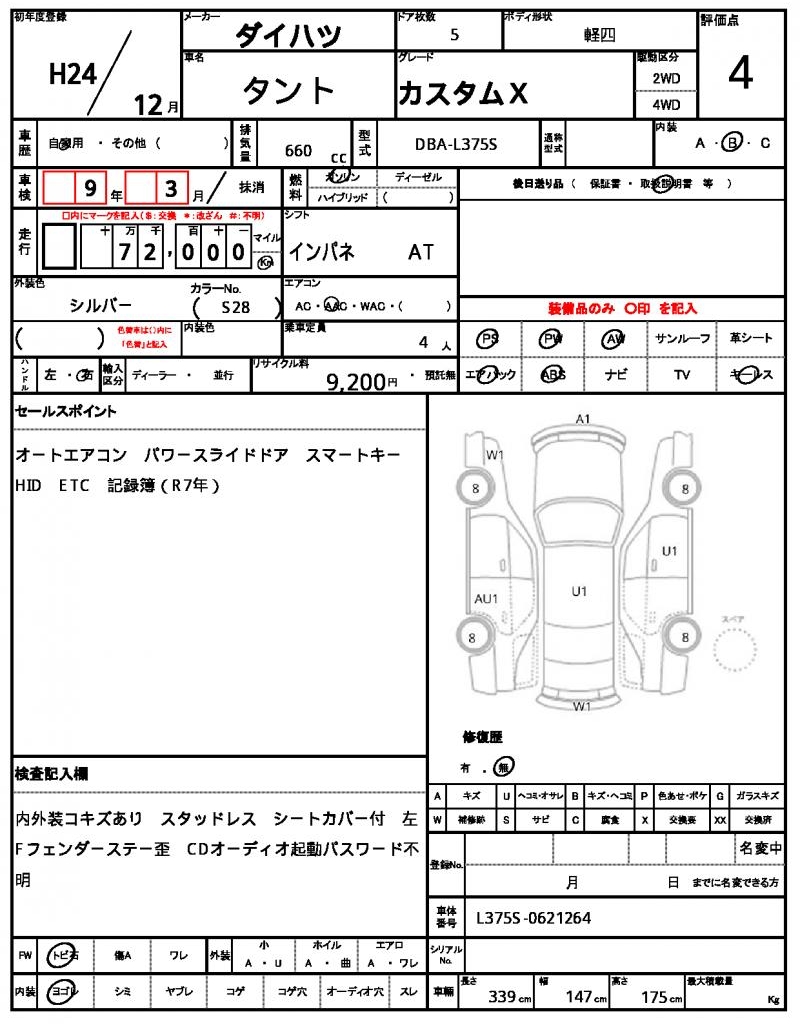 | Grade | カスタムX | Model Code | DBA-L375S |