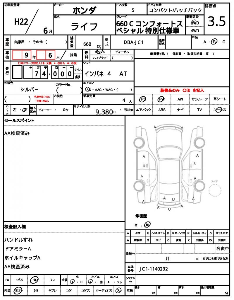 | Grade | 660 C コンフォートスペシャル | Model Code | DBA-JC1 |