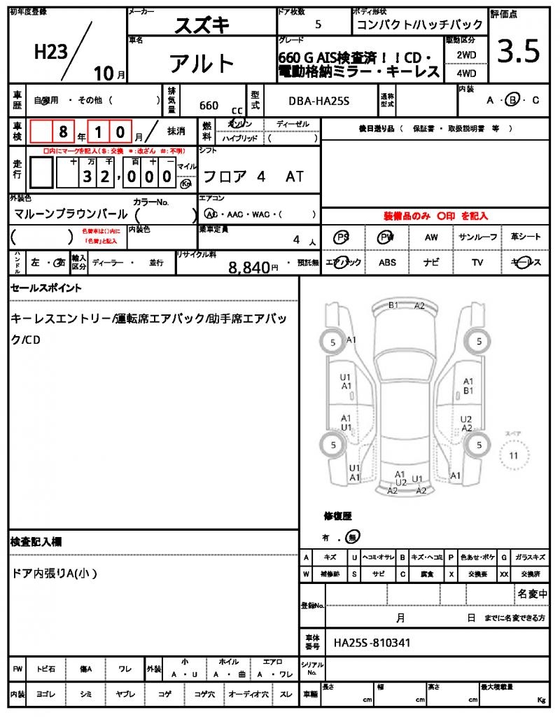 | Registration Date | 2011/10 | Chassis Number | HA25S-810341 |