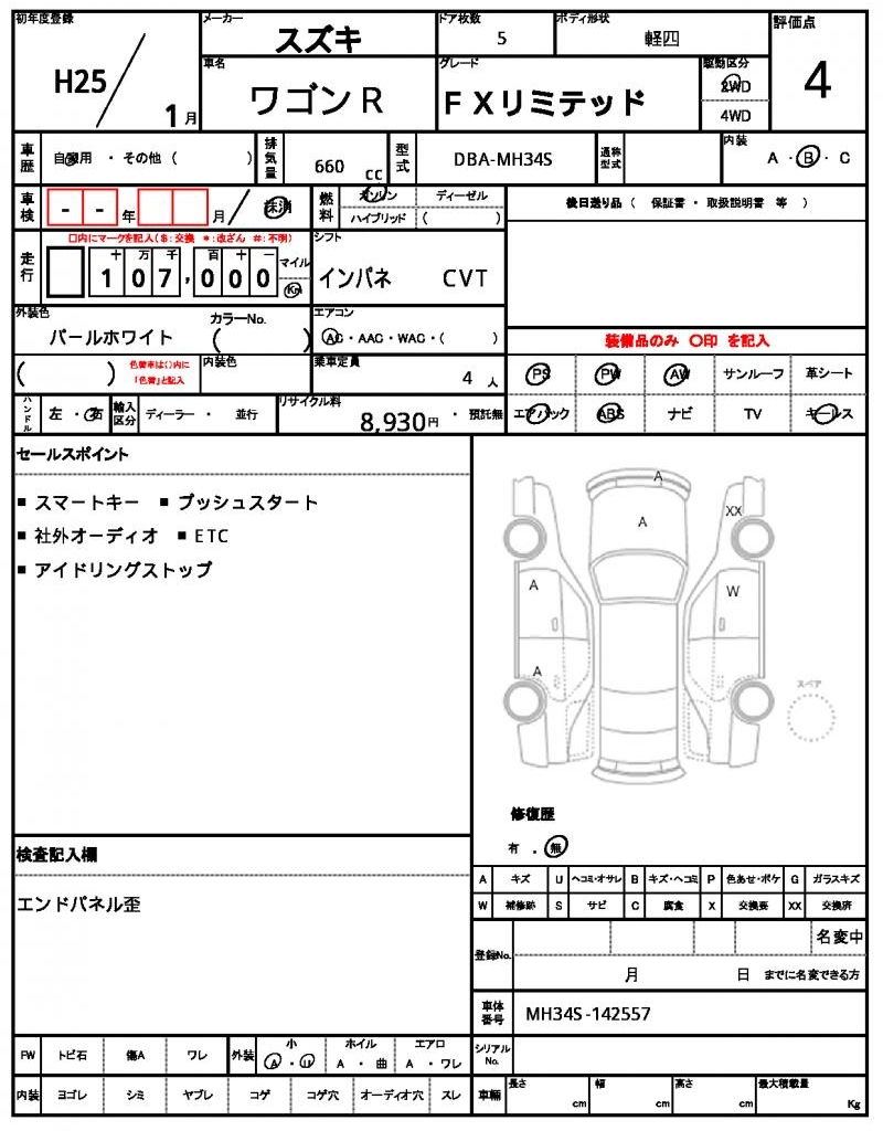 | Grade | FXリミテッド | Model Code | DBA-MH34S |