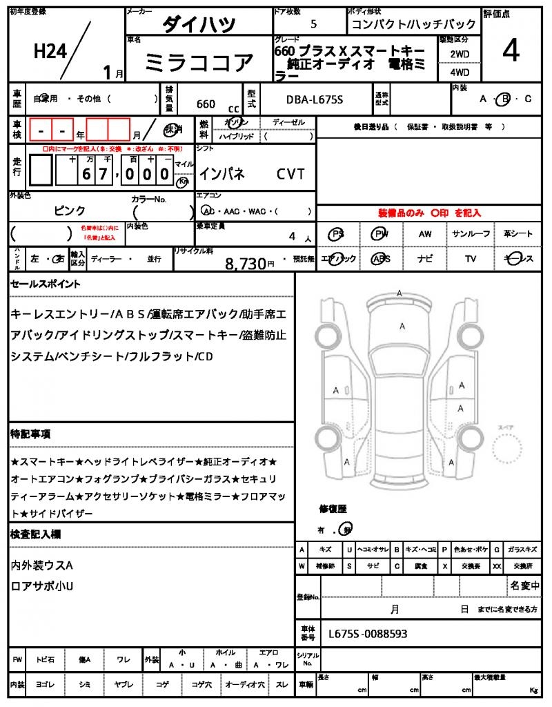 | Grade | 660 プラス X | Model Code | DBA-L675S |
