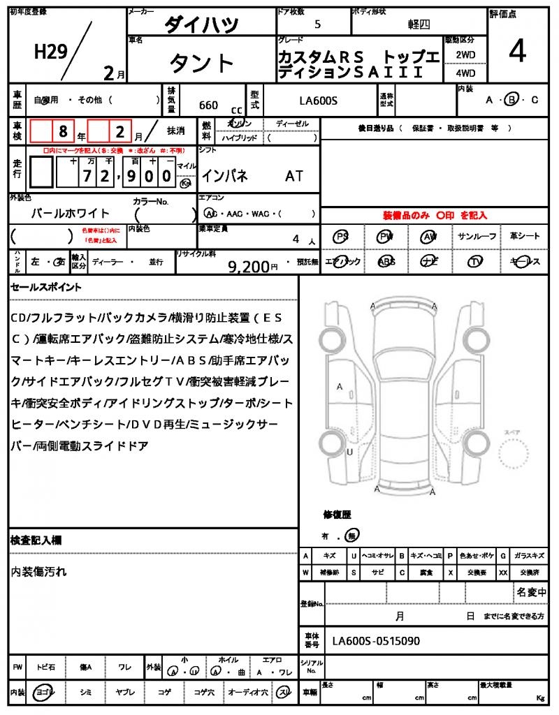 | Grade | カスタムRS トップエディションSAIII | Model Code | LA600S |