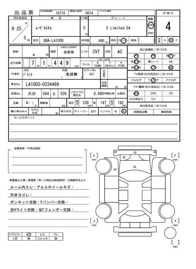 | Grade | X Limited SA | Model Code | DBA-LA100S |