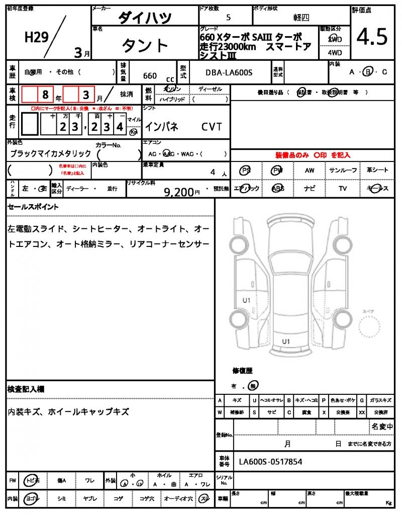 | Grade | 660 Xターボ SAIII | Model Code | DBA-LA600S |