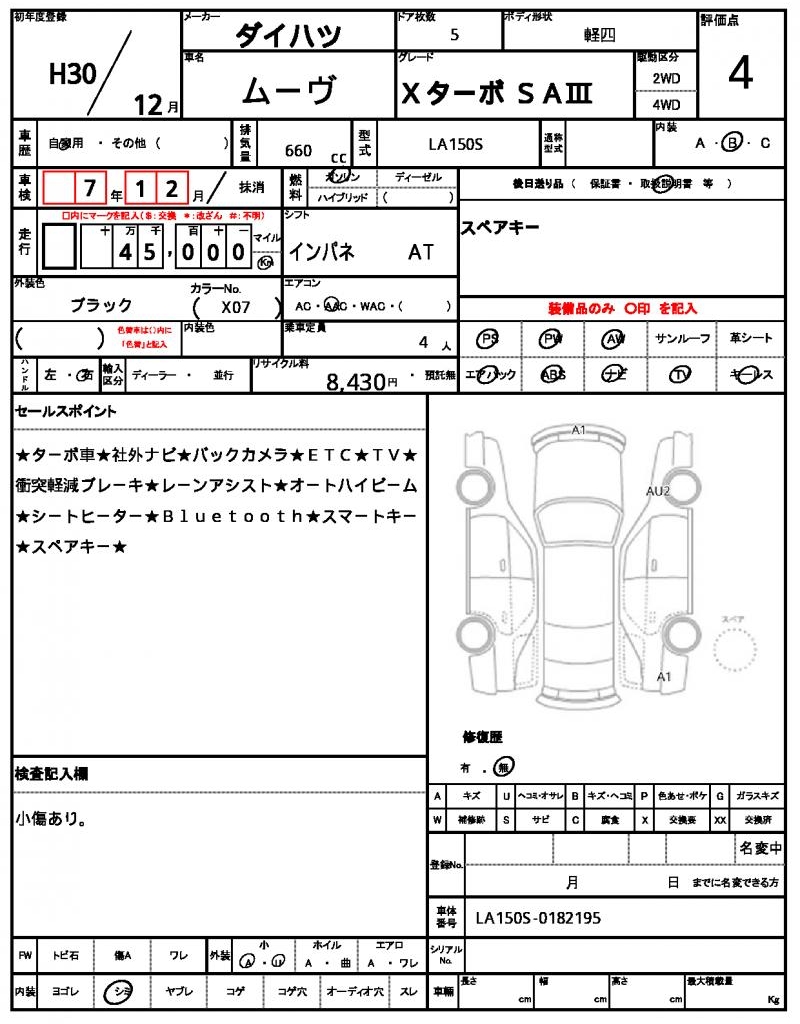 | Grade | Xターボ SA? | Model Code | LA150S |