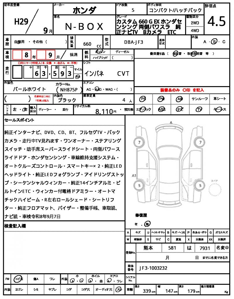 | Manufacturer | HONDA | Model | N-BOX |