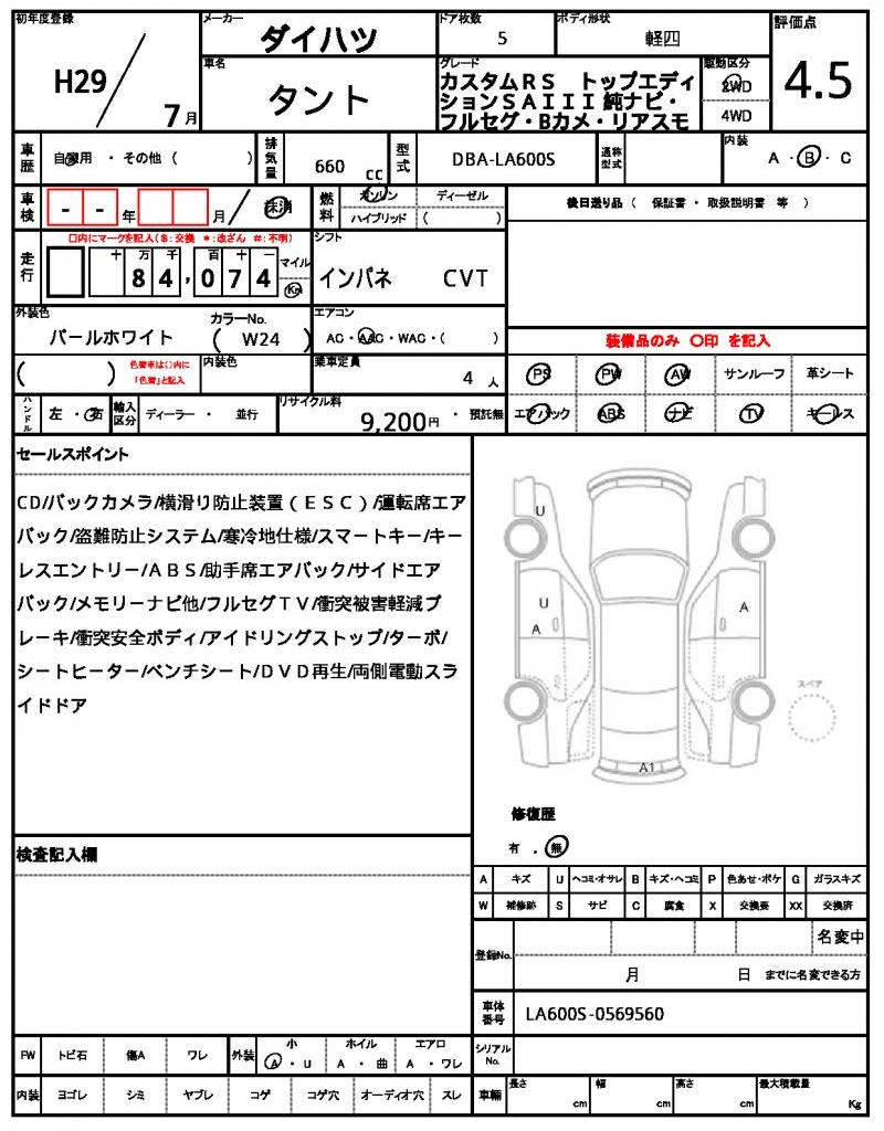 | Grade | カスタムRS トップエディションSAIII | Model Code | DBA-LA600S |