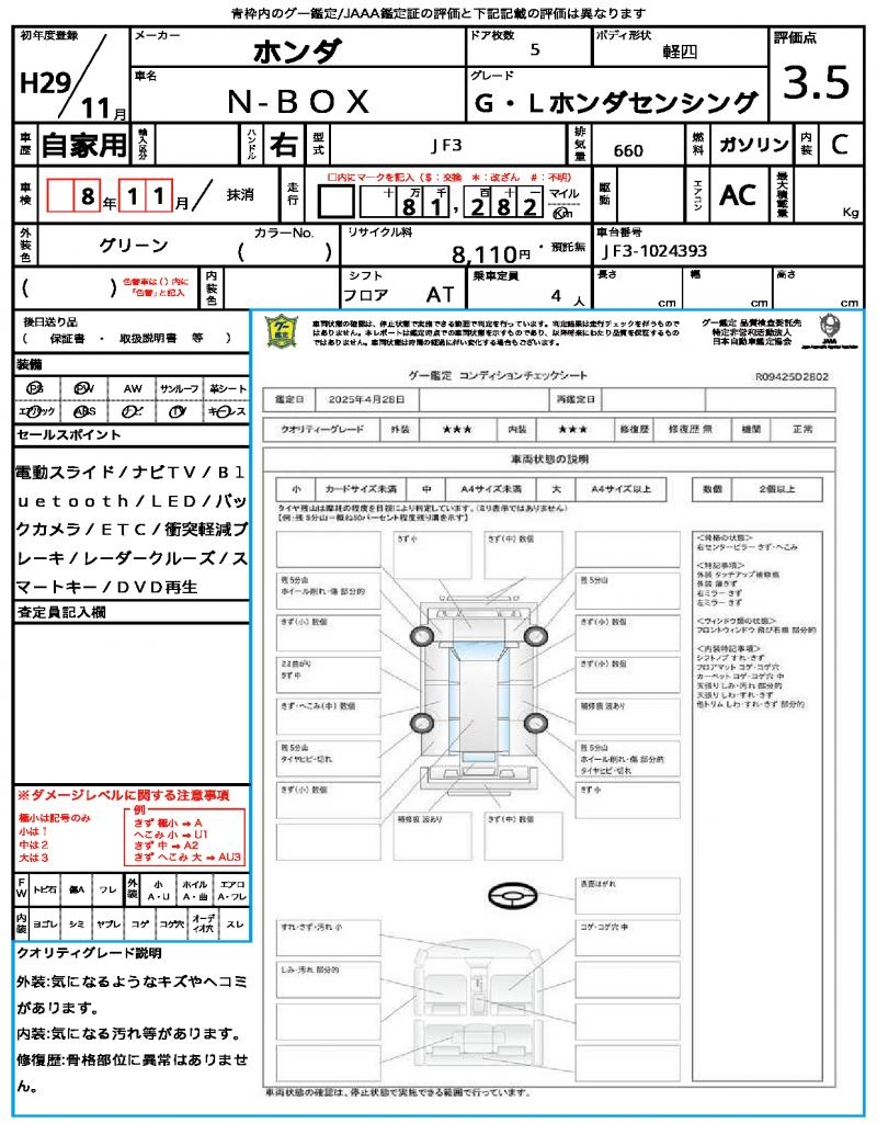 | Grade | G・Lホンダセンシング | Model Code | JF3 |